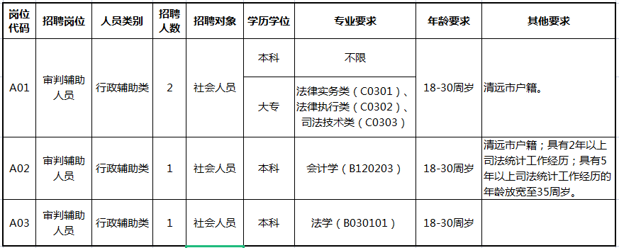 根據(jù)工作需要,清遠市清城區(qū)人民法院現(xiàn)面向社會公開招聘專項工作聘員4名。具體崗位設(shè)置如下: