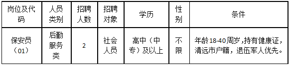 清遠市清城區(qū)機關(guān)事務管理局因工作需要,根據(jù)《關(guān)于印發(fā)<清遠市清城區(qū)機關(guān)事業(yè)單位專項工作聘員、合同制聘員以及后勤服務類人員管理辦法>的通知》(城區(qū)人社〔2022〕20號)文件精神,面向社會公開招聘后勤服務類人員2名,現(xiàn)將有關(guān)事宜公告如下: